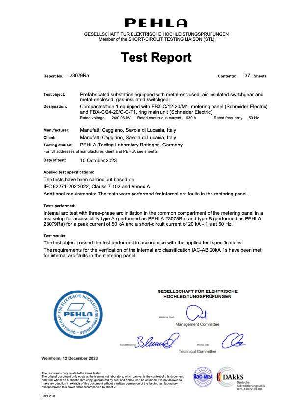 Arc-Test ai sensi della norma IEC 62271- 202:2014 e 62271-202:2022.